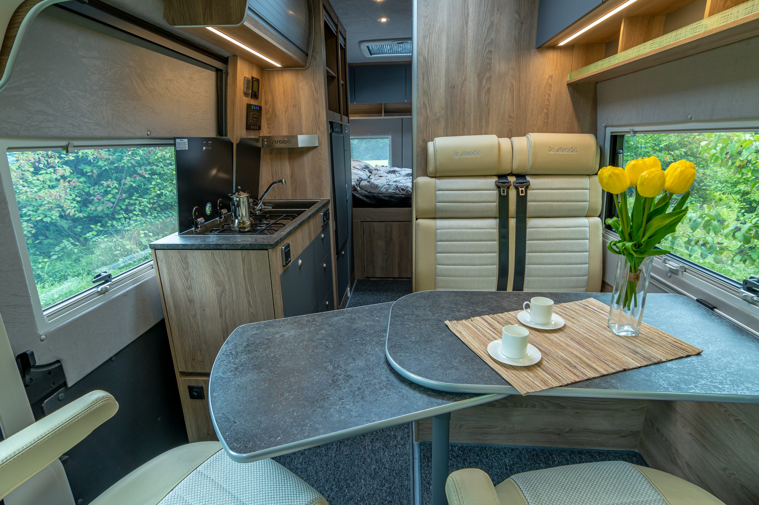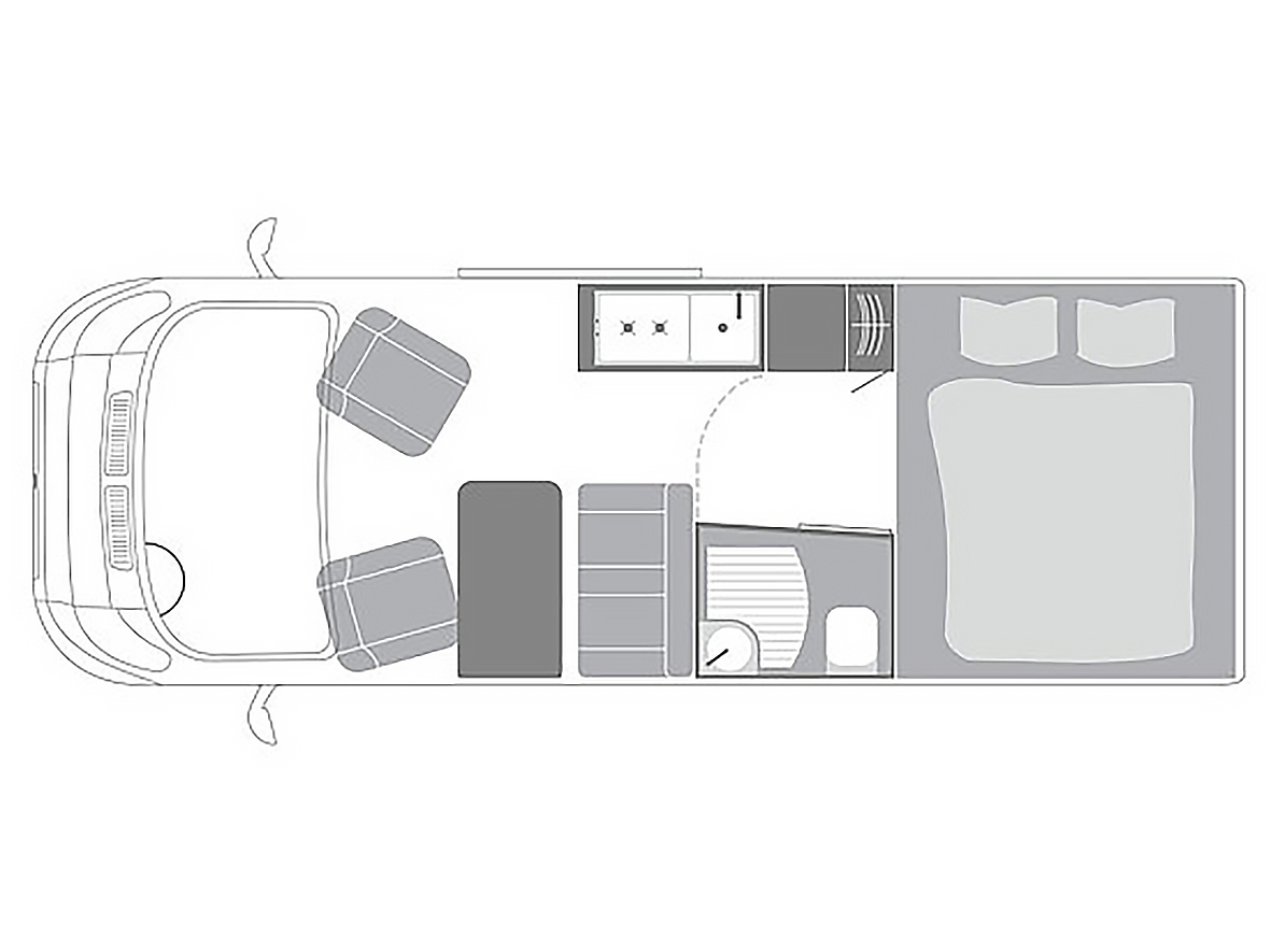 Der la strada Avanti C kombiniert die Annehmlichkeiten eines weit größeren Reisemobils mit der Flexibilität eines Kastenwagens. Mehr Komfort für zwei Personen lässt sich in einem Kastenwagen kaum unterbringen.