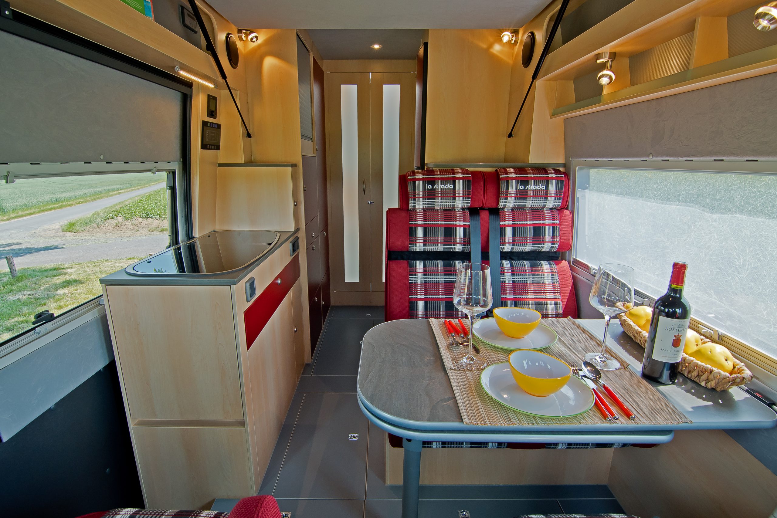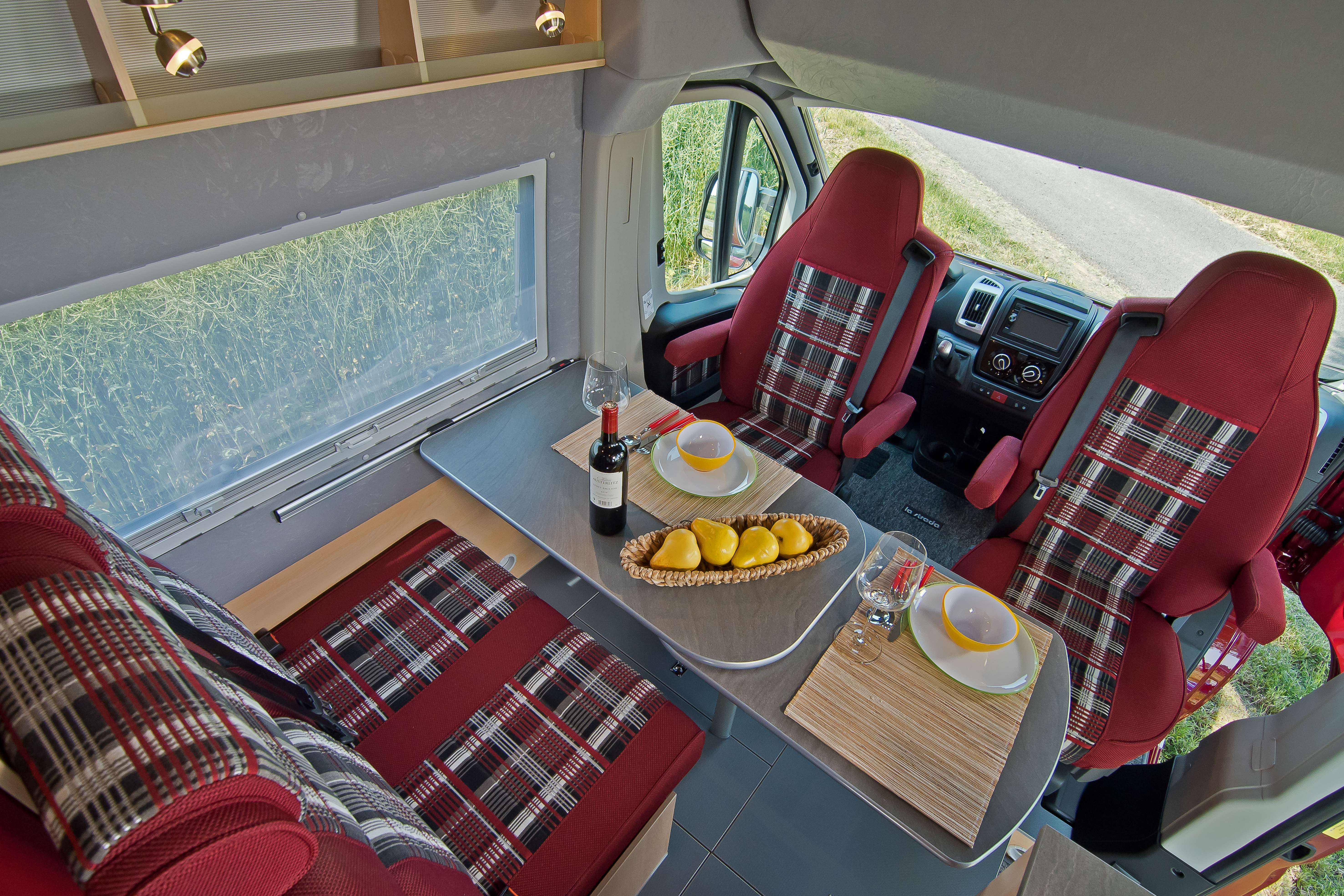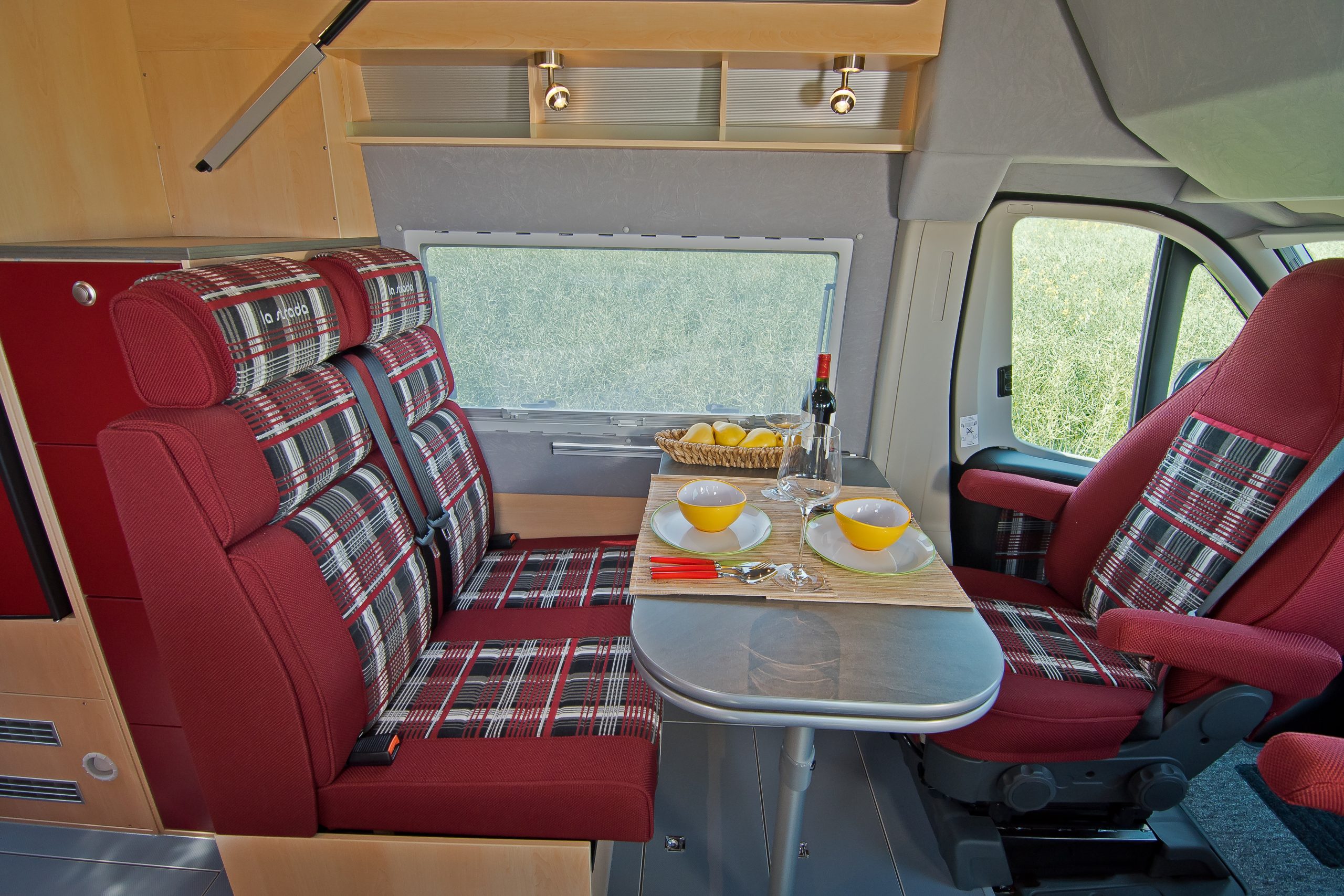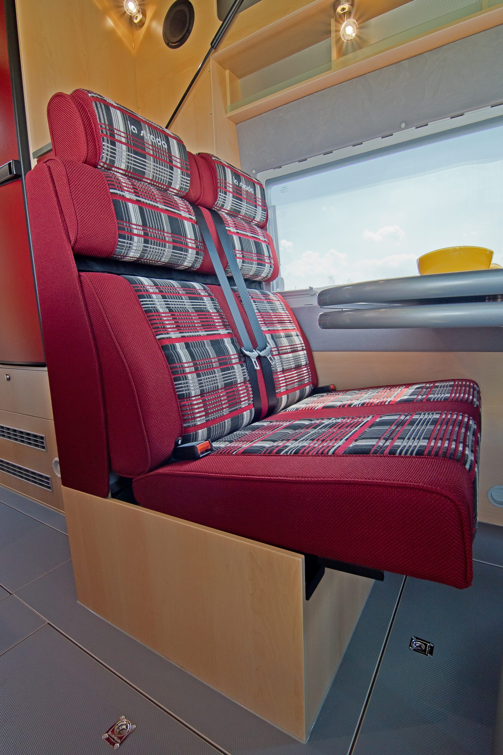 Zur Sitzgruppe des Avanti H gehört eine weiter verbesserte Sitzbank, die ab Modelljahr 2018 in allen Avanti Modellen zum Einsatz kommt. Sie verfügt über breitere Kopfstützen, eine festere Polsterung und vor allem über die Befestigungspunkte für einen Isofix-Kindersitz. Die Rückenlehne und Sitzfläche lassen sich in unterschiedlichen Positionen arretieren. Für bequemes Sitzen in allen Positionen sorgt die konvexe Form der Sitzlehne, die sich dem Rücken anpasst. Die Sitzbank ist mit zwei Drei-Punkt-Gurten ausgestattet. Im Wohnbetrieb dienen die gedrehten Fahrerhaussitze als Sessel.