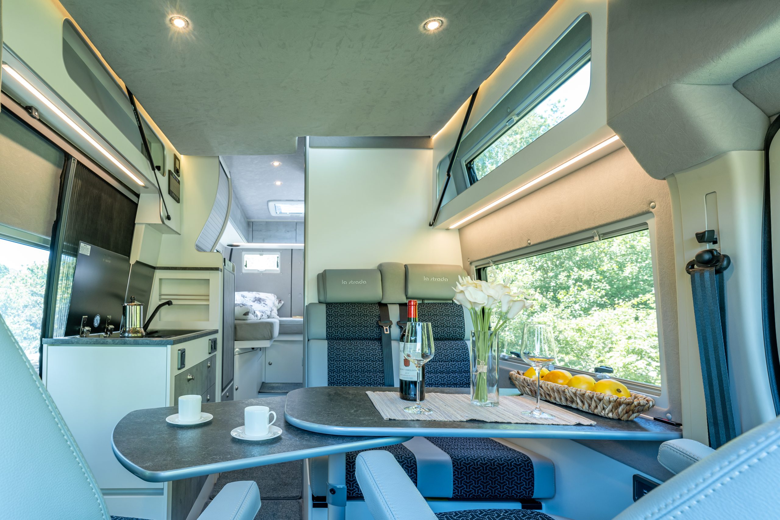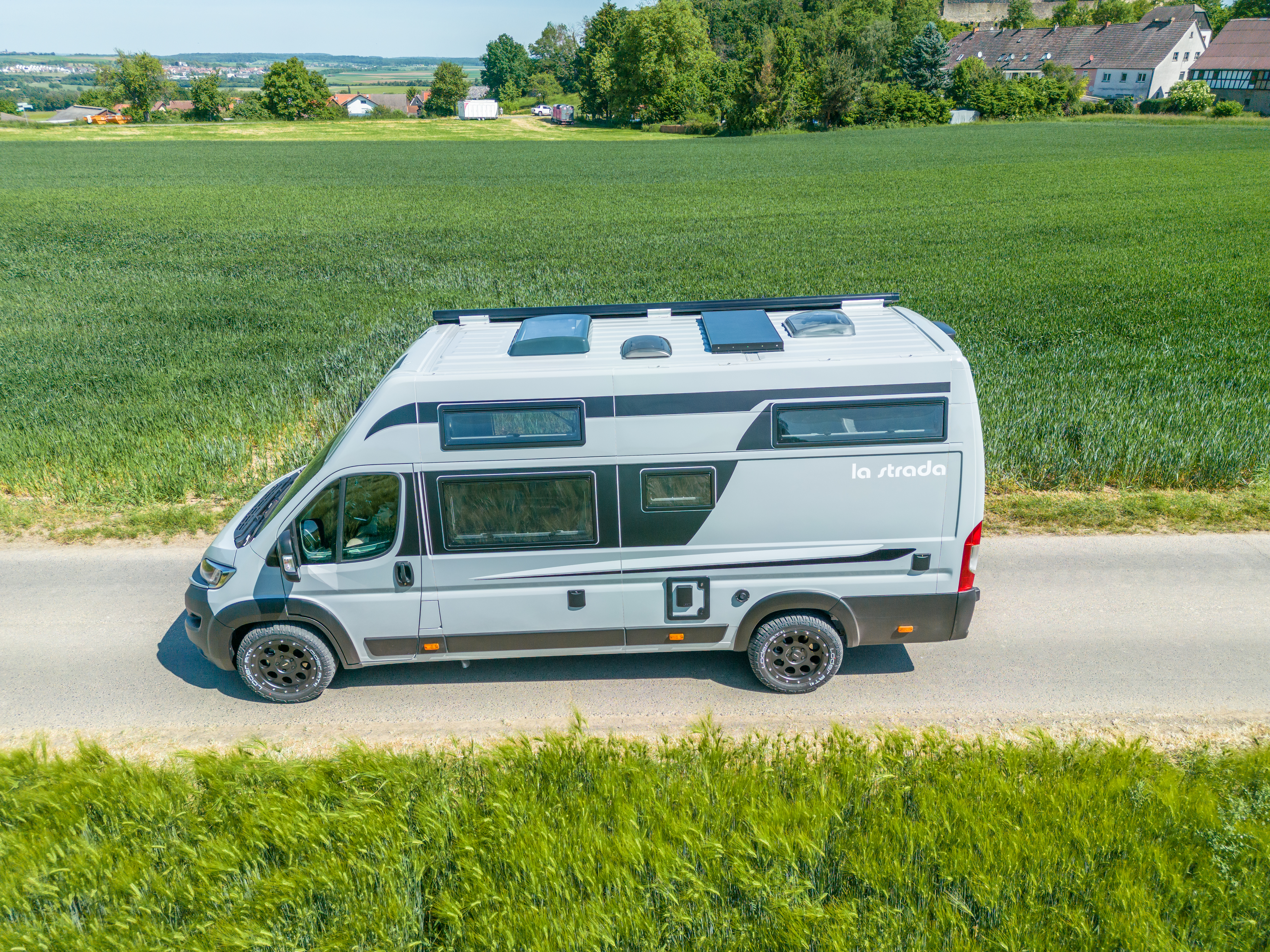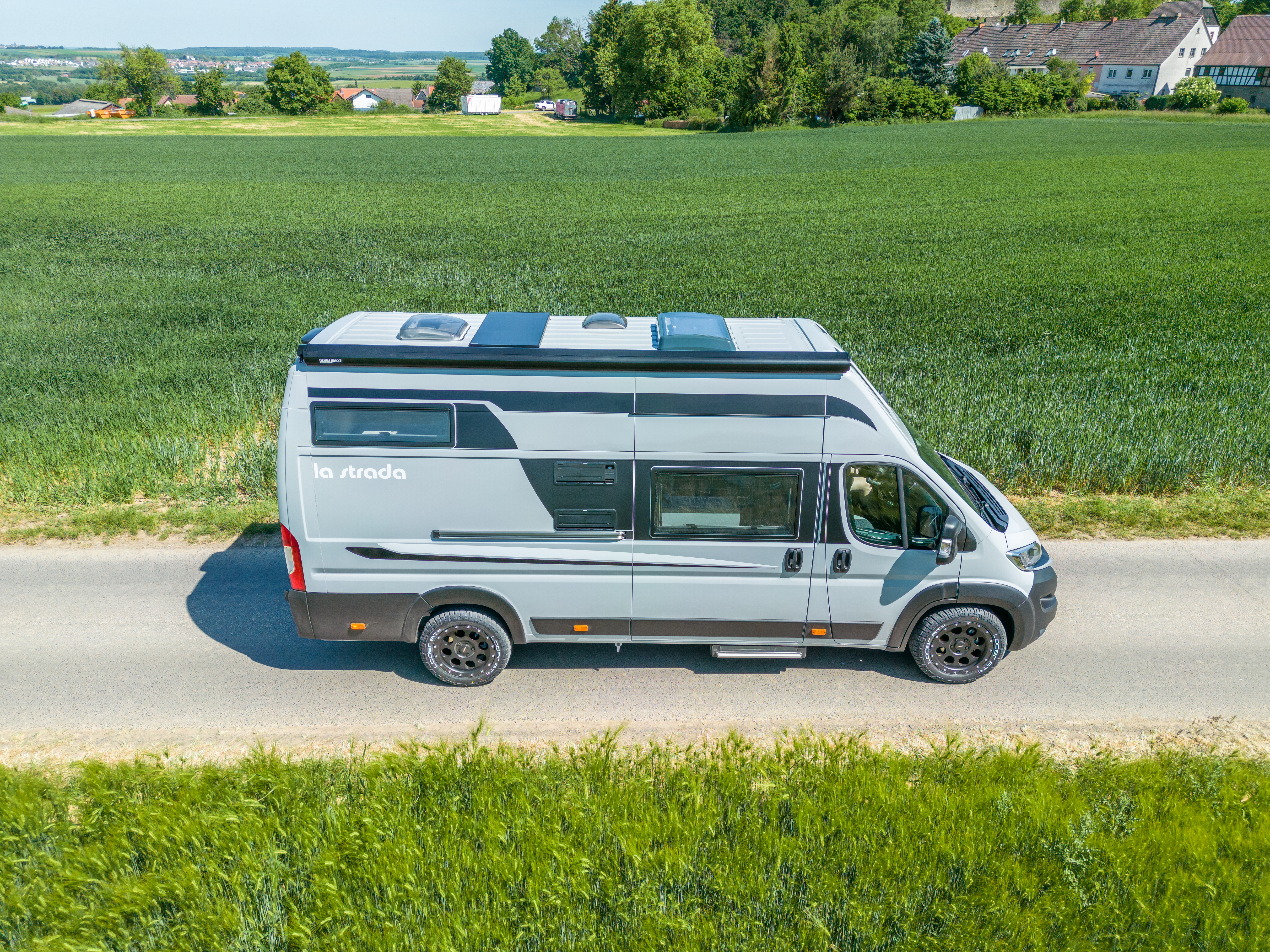 Der la strada Avanti EBF ist ein kompaktes Reisemobil für bis zu vier Personen. Zum Grundpreis von 76.433 Euro kombiniert er Fahr-, Wohn- und Schlafkomfort mit hochwertiger Verarbeitung.