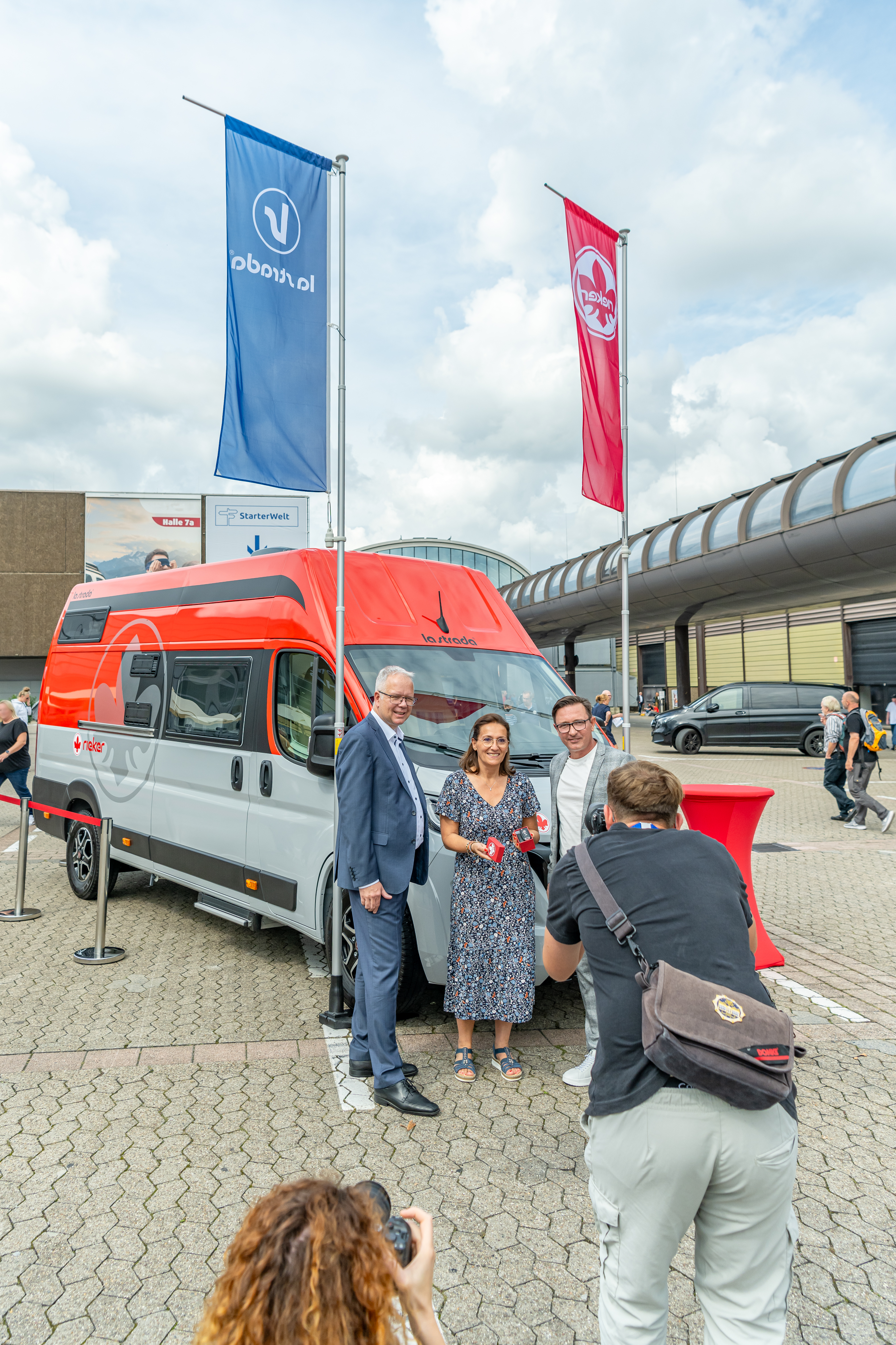 Düsseldorf 28. August 2023 – Anne Gadaix hat Grund zur Freude. Auf dem Caravan Salon in Düsseldorf übernahm die glückliche Gewinnerin des EU-weiten Gewinnspiels der beliebten Schuhmarke Rieker ihren Hauptgewinn: Einen la strada Avanti EB im Wert von 90.000 Euro. Aus über 275.000 Teilnehmern aus ganz Kontinental-Europa fiel das Glücklos auf die Französin aus der Nähe von Lyon. Heute übernahm Sie auf dem Caravan Salon in Düsseldorf die Fahrzeugschlüssel aus den Händen von Rieker Marketingdirektor Robert Moldoveanu und la strada Geschäftsfrüher Marco Lange.