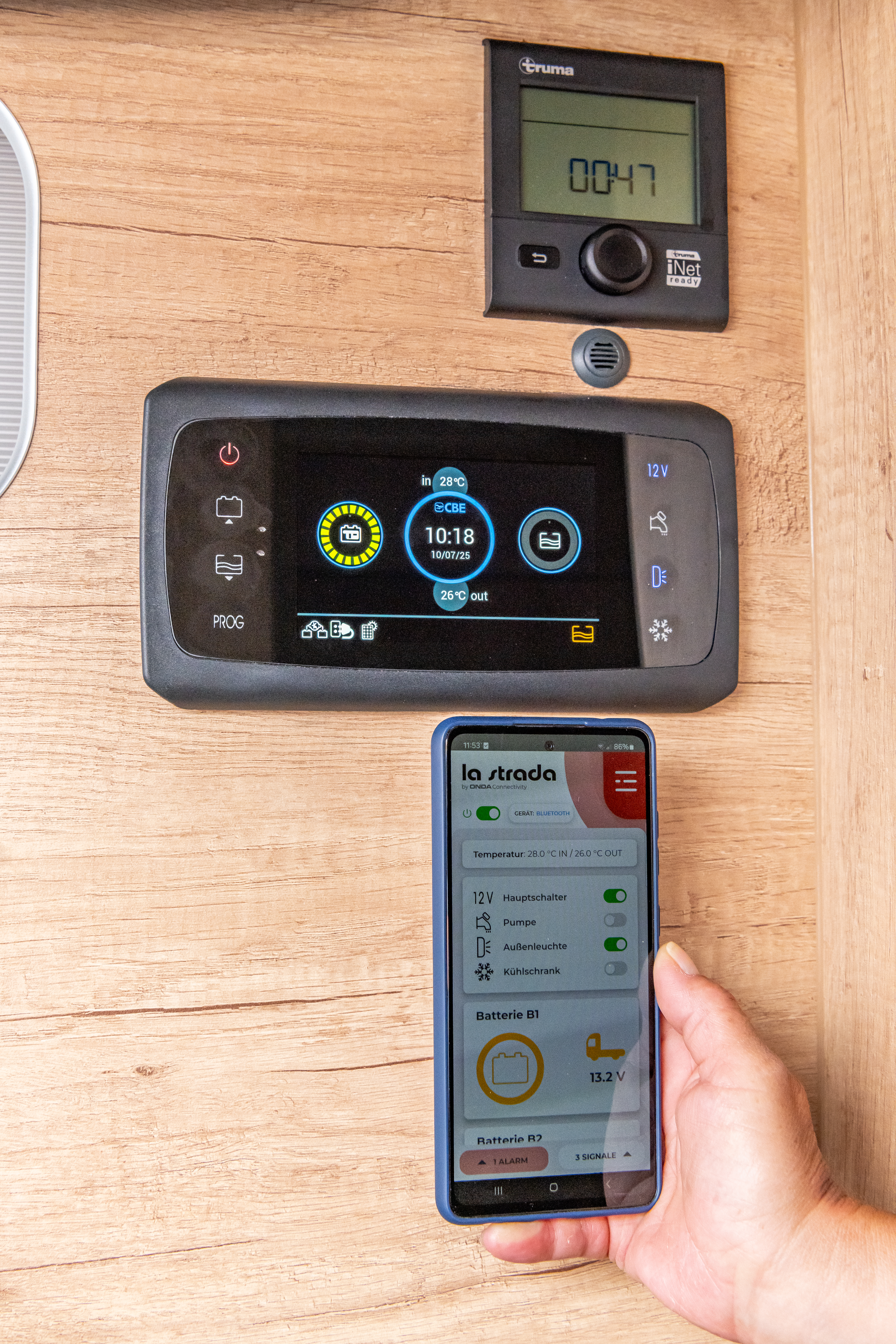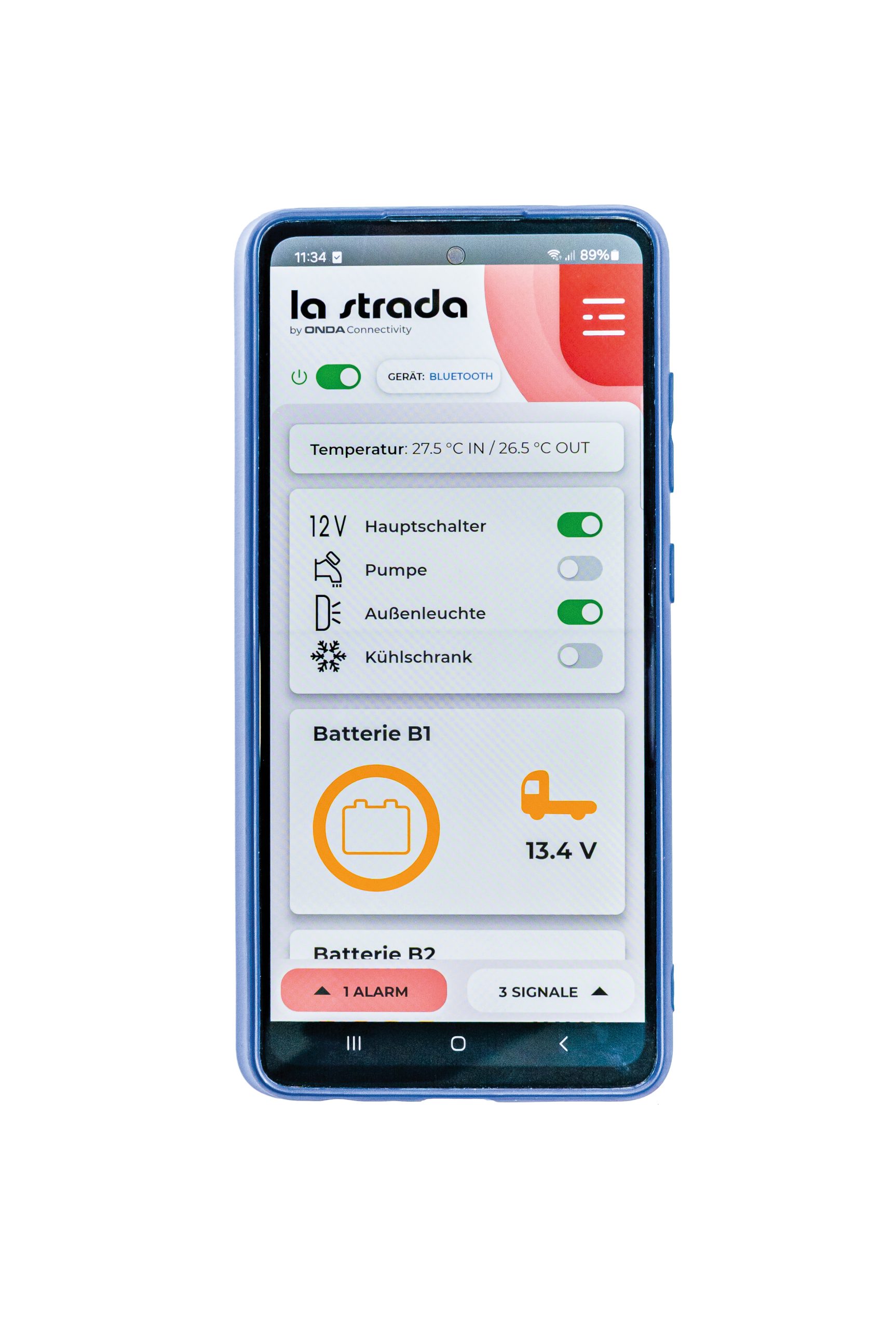 Die smarten Komponenten des neuen la strada Elektronikkonzepts wurden an die Bedürfnisse der la strada Kunden angepasst und integrieren alle in der umfangreichen la strada Ausstattungsliste verfügbaren Elektronik-Komponenten. Von verschiedenen Batterien, Kühlschränken, Heizungen bis zur Solaranlage und dem Router für die Datenverbindung sind die vom Kunden gewählten Elemente in der Smart Caravaning Lösung integriert.
