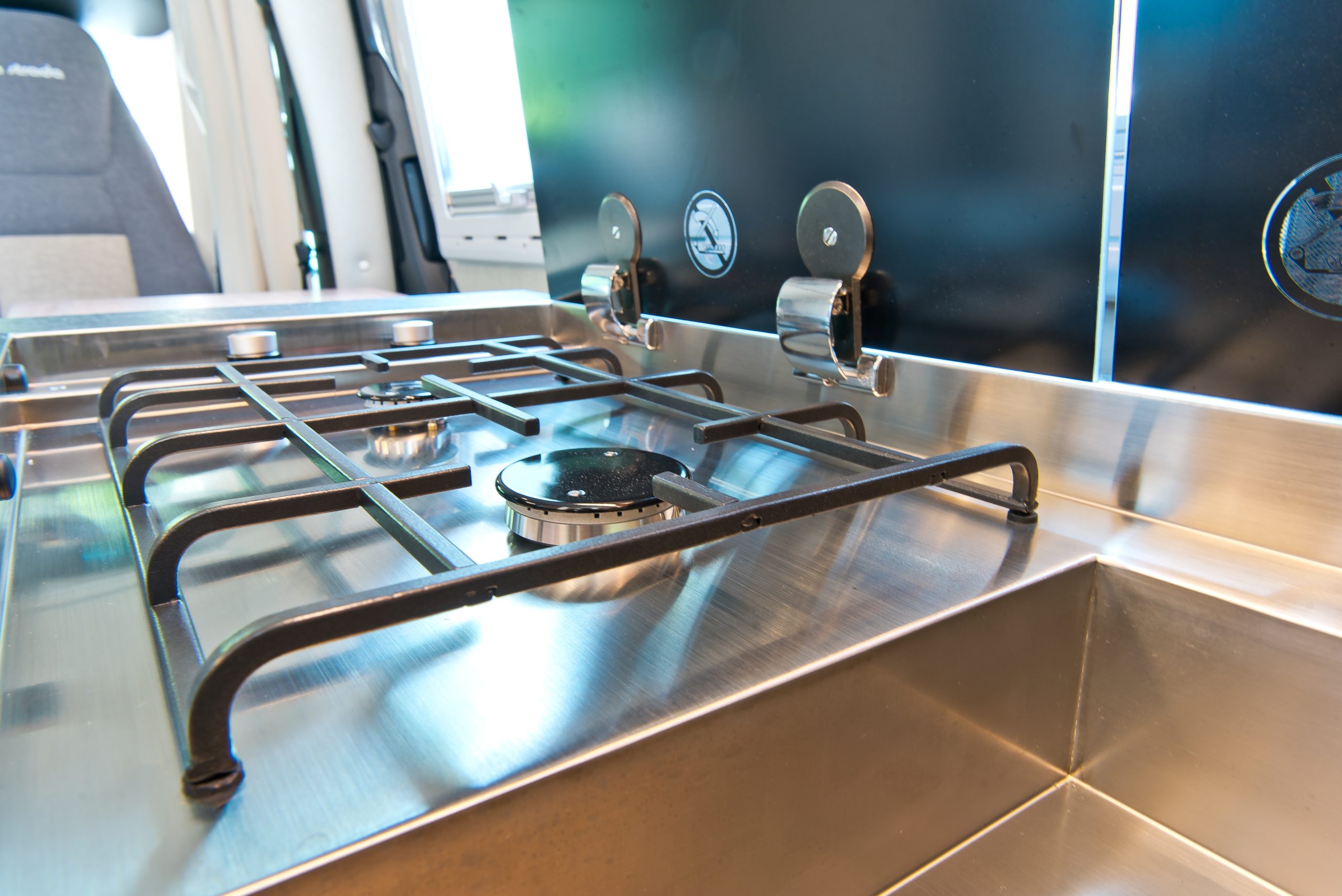 Ab dem Modelljahr 2020 erhalten alle la strada Reisemobile mit Ausnahme des Avanti M serienmäßig eine neue Spül-Koch-Kombination im Küchenblock. Einfachere Bedienung und höherer Nutzwert standen dabei im Fokus der Überarbeitung. Die neue gusseiserne Topfauflage über den beiden Flammen mit Piezozündung ermöglicht auch den sicheren Einsatz von größeren Töpfen. Diese passen danach auch in die neue größere und tiefere Edelstahl-Spüle.