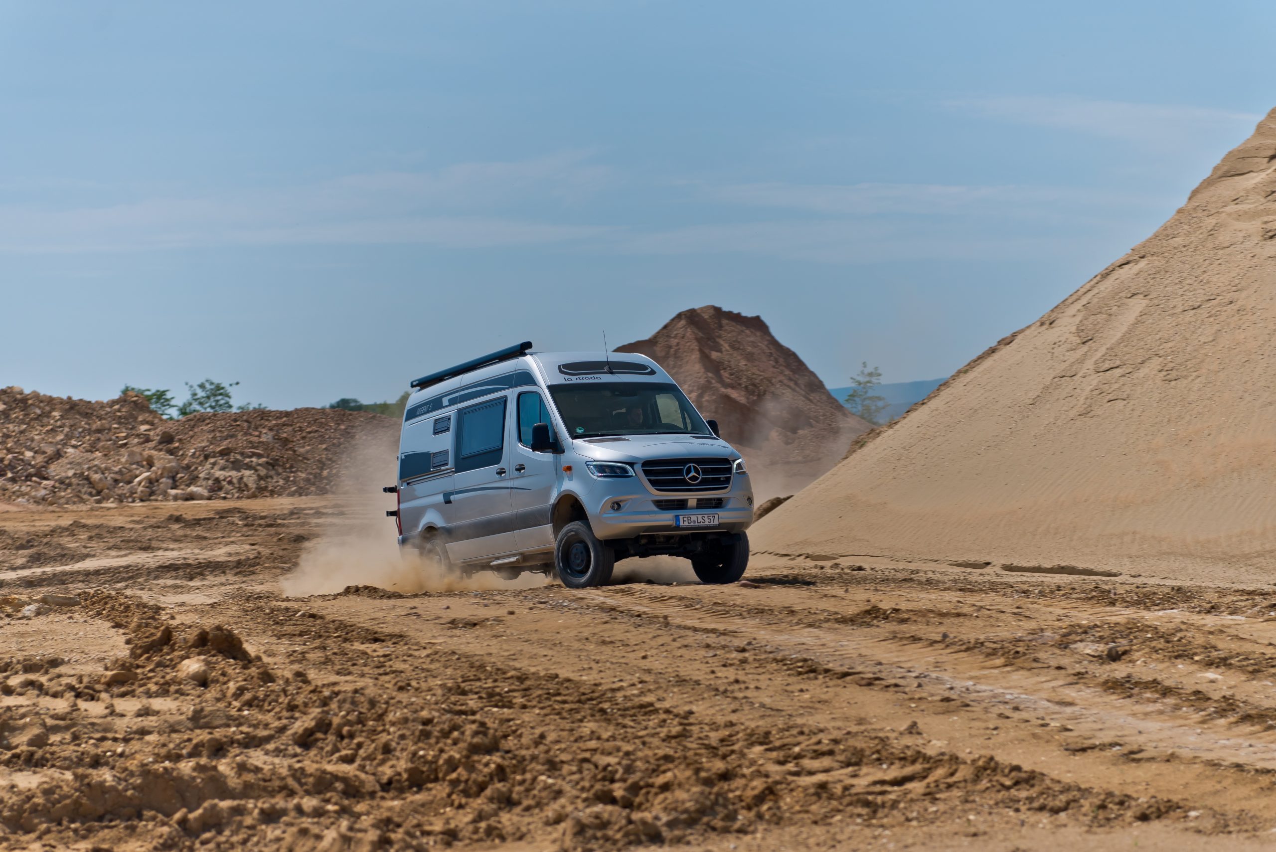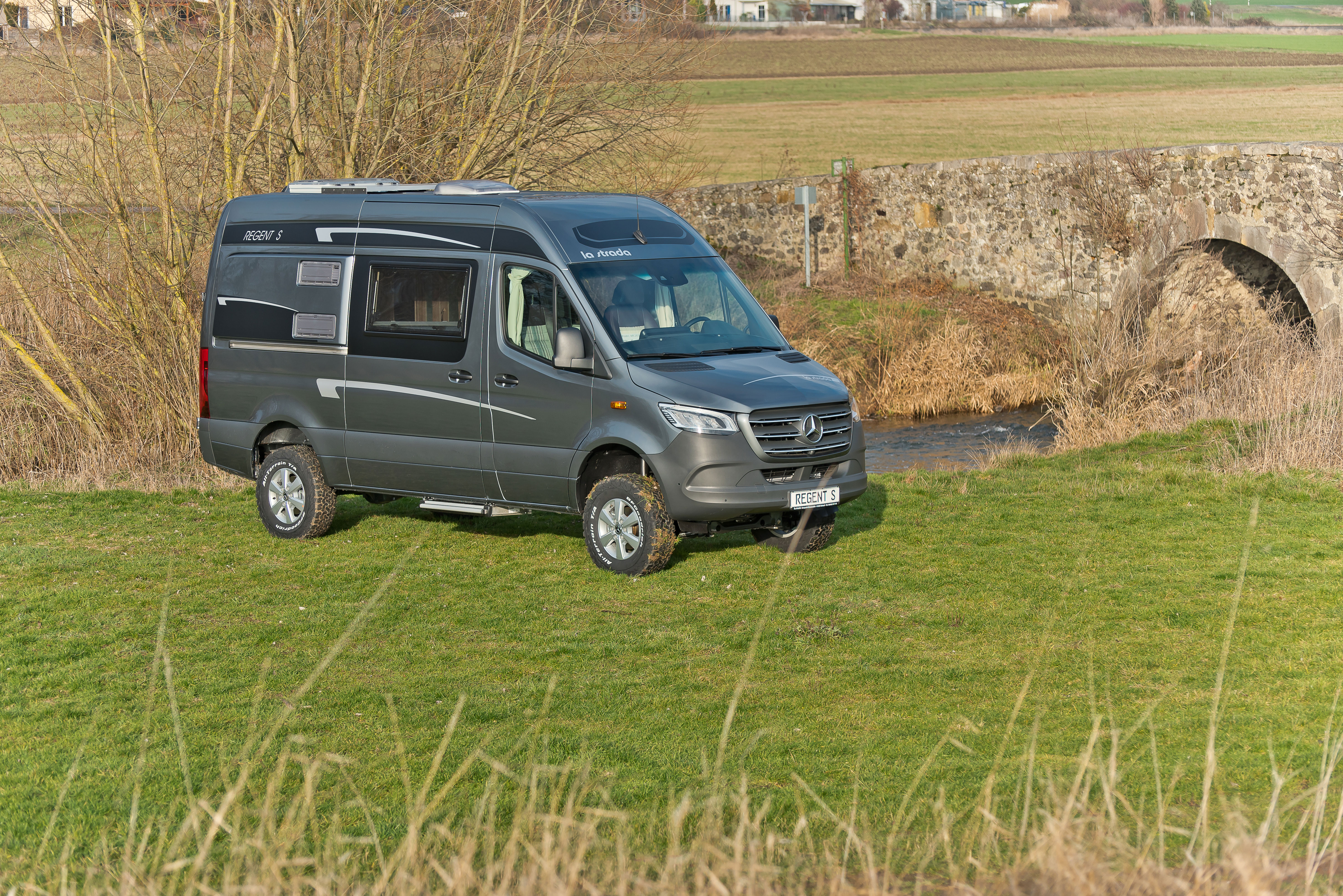 Gemeinsam mit dem österreichischen Allradspezialisten Oberaigner rüstet la strada seine Regent Allrad-Modelle auch für härtere Off-Road-Bedingungen auf. Dazu kann der zuschaltbare Allradantrieb in einen permanenten umgebaut werden. Geländeuntersetzung, mechanisch schaltbare Längs- und Querdifferentialsperren und die optimale Geländebereifung stehen außerdem zur Auswahl.
