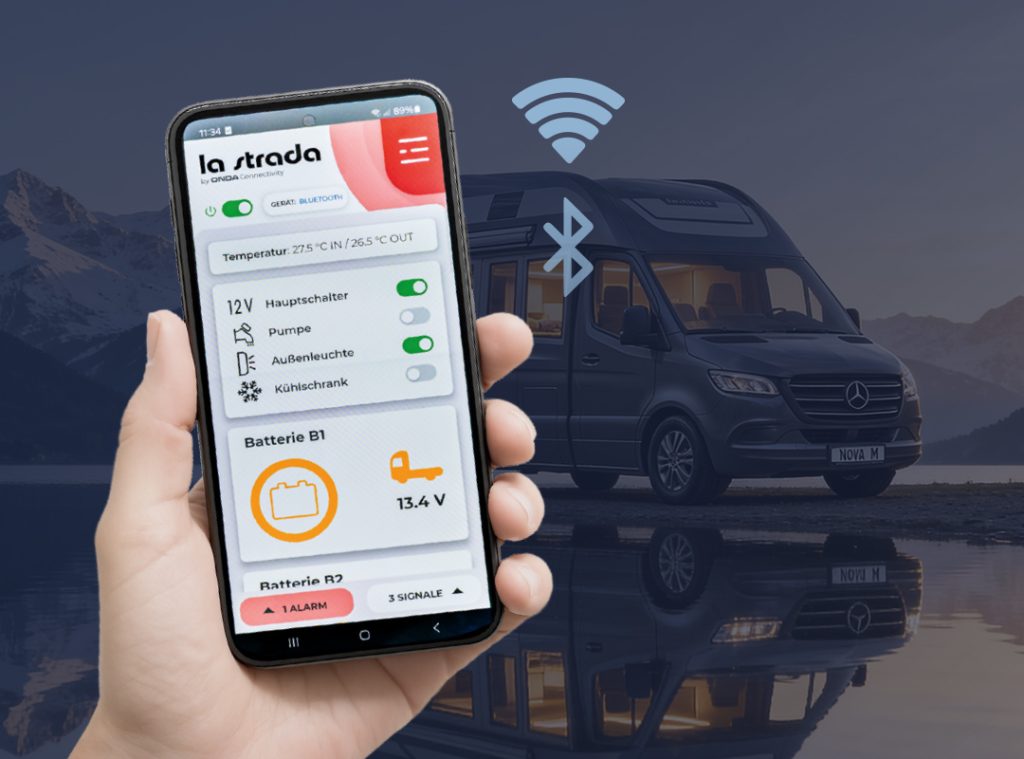 Smart Caravaning ist da. Unser neuester Schritt in die Zukunft – passend zum Jubiläum von la strada. Mit dem neu entwickelten Elektronikkonzept machen wir unsere Campervans ab Modelljahr 2026 digitaler, vernetzter und das Reisen mit ihnen noch komfortabler. Zentrale Fahrzeugfunktionen lassen sich über ein fest installiertes Bedienpanel und per Smartphone-App intuitiv überwachen und steuern.